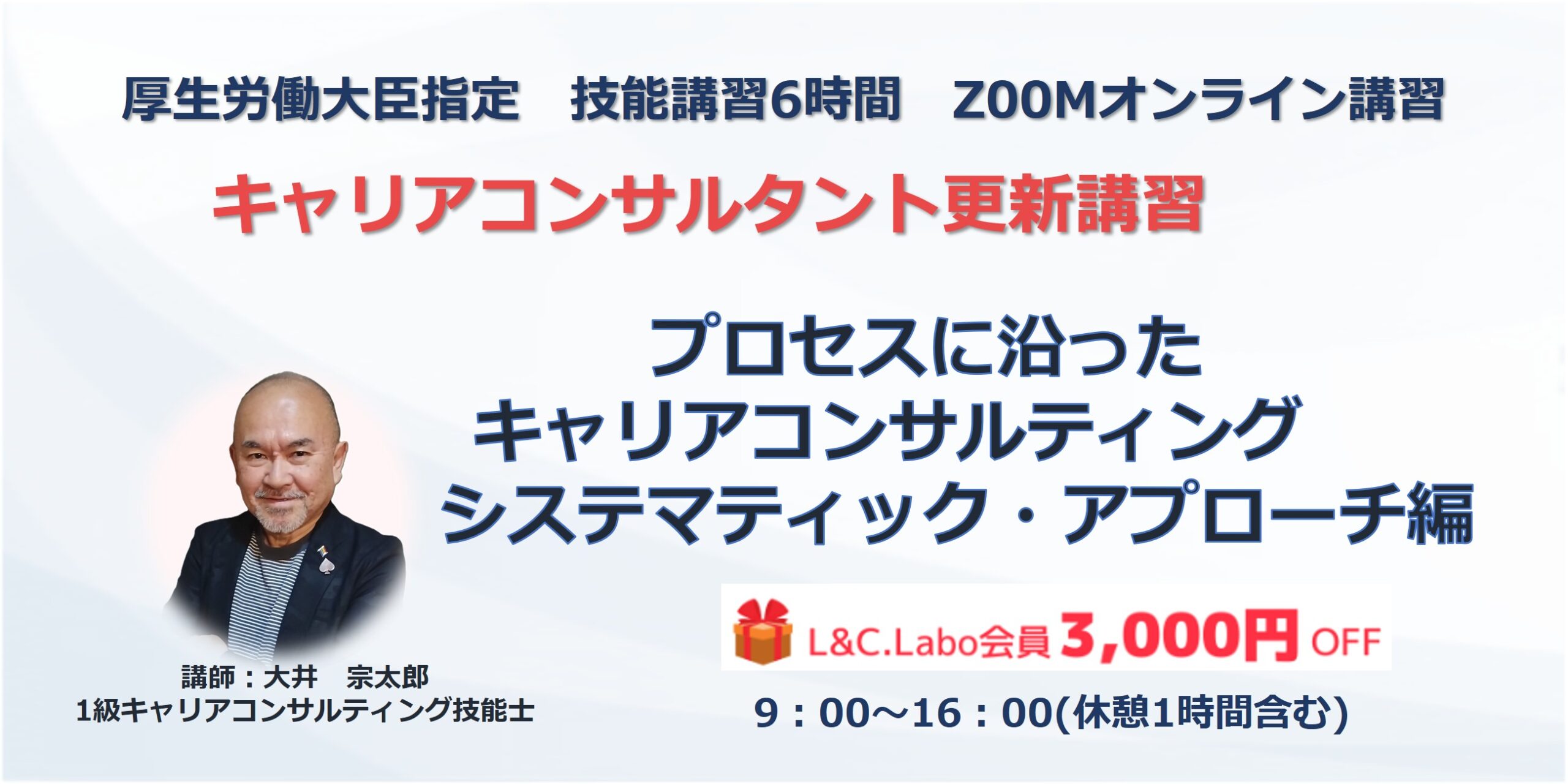 | 【技能講習】プロセスに沿ったキャリアコンサルティング システマティック・アプローチ編 |