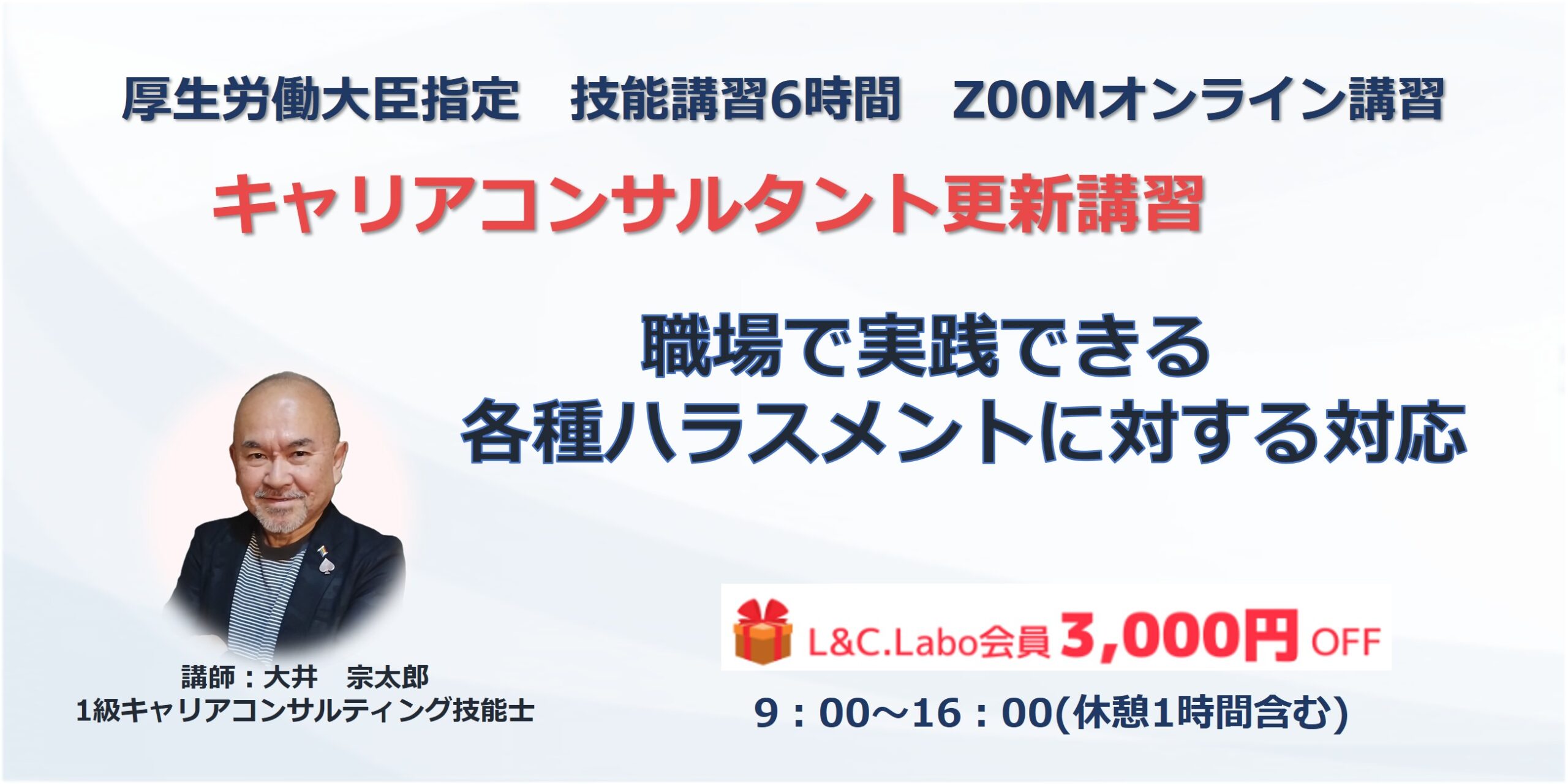 受講料(銀行振込):L&C.Labo会員価格:15000円(非課税)一般価格:18000円(非課税)